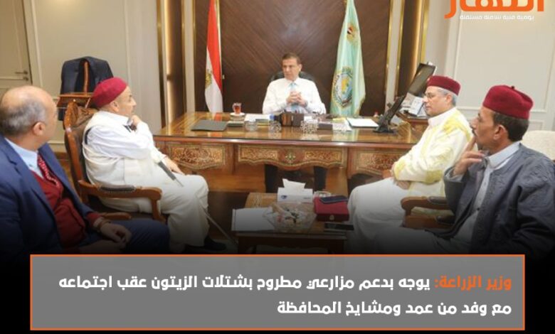 وزير الزراعة يوجه بدعم مزارعي مطروح بشتلات الزيتون عقب اجتماعه مع وفد من عمد ومشايخ المحافظة