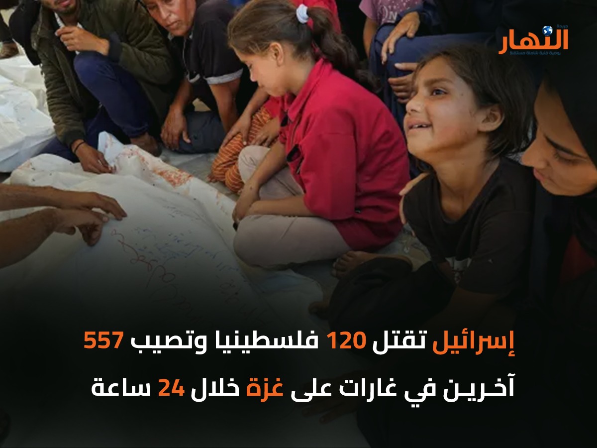 أكدت وزارة الصحة في غزة، أن الغارات الإسرائيلية على القطاع تسببت في استشهاد 120 شخصا (منهم 3 شهداء انتشال) وإصابة 557 خلال الـ24 ساعة الماضية.