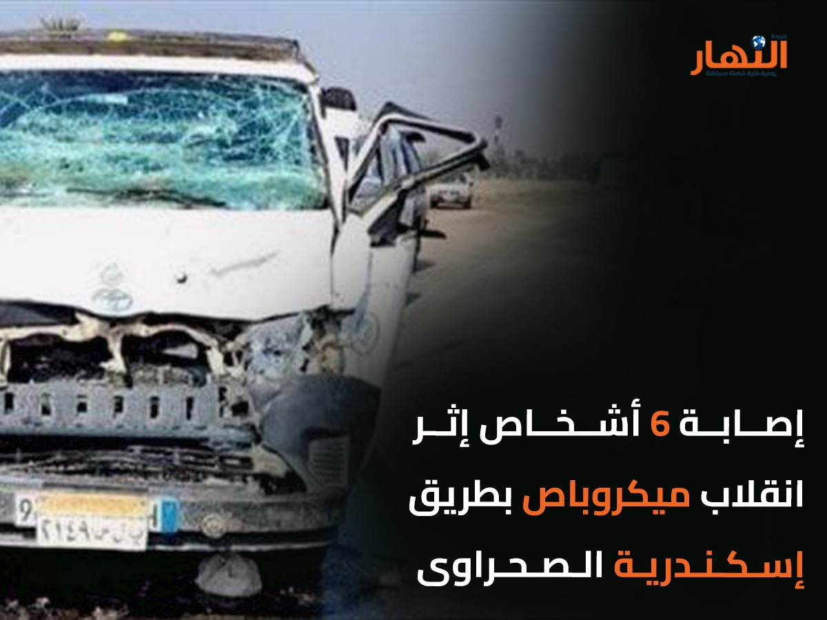 أصيب 6 أشخاص بسبب حادث انقلاب ميكروباص أعلى طريق إسكندرية الصحراوى ونقلوا إلى المستشفى، وحرر محضر بالواقعة.