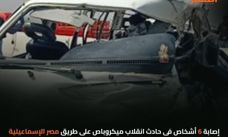 إصابة 6 أشخاص فى حادث انقلاب ميكروباص على طريق مصر الإسماعيلية