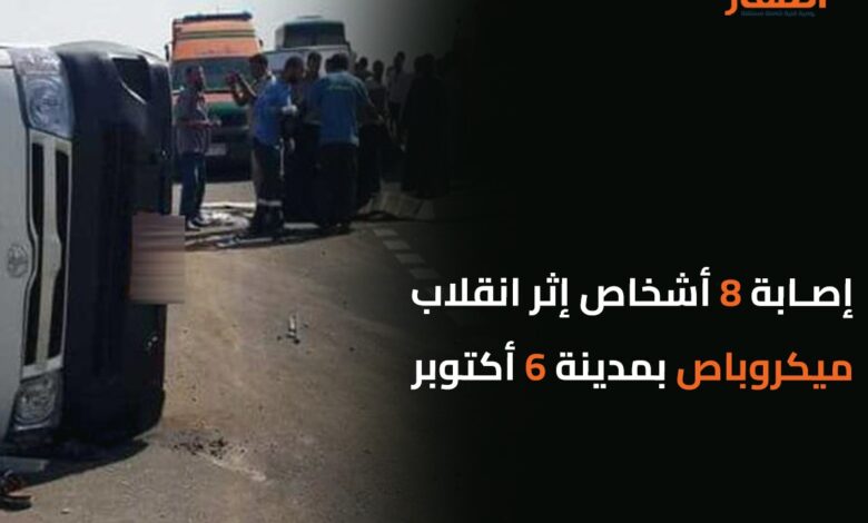 إصابة 8 أشخاص إثر انقلاب ميكروباص بمدينة 6 أكتوبر