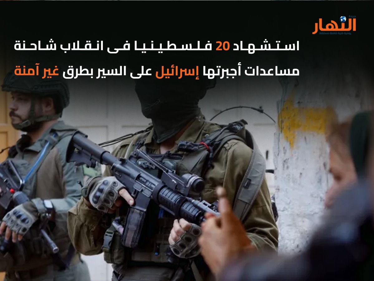 أعلنت مصادر طبية فلسطينية استشهاد 20 فلسطينيا وإصابة العشرات، جراء انقلاب شاحنة كانت محملة بالمساعدات، فوق حشد من طالبى الإغاثة وسط قطاع غزة بعد أن أجبرها الاحتلال الإسرائيلى على السير بطرق غير آمنة.