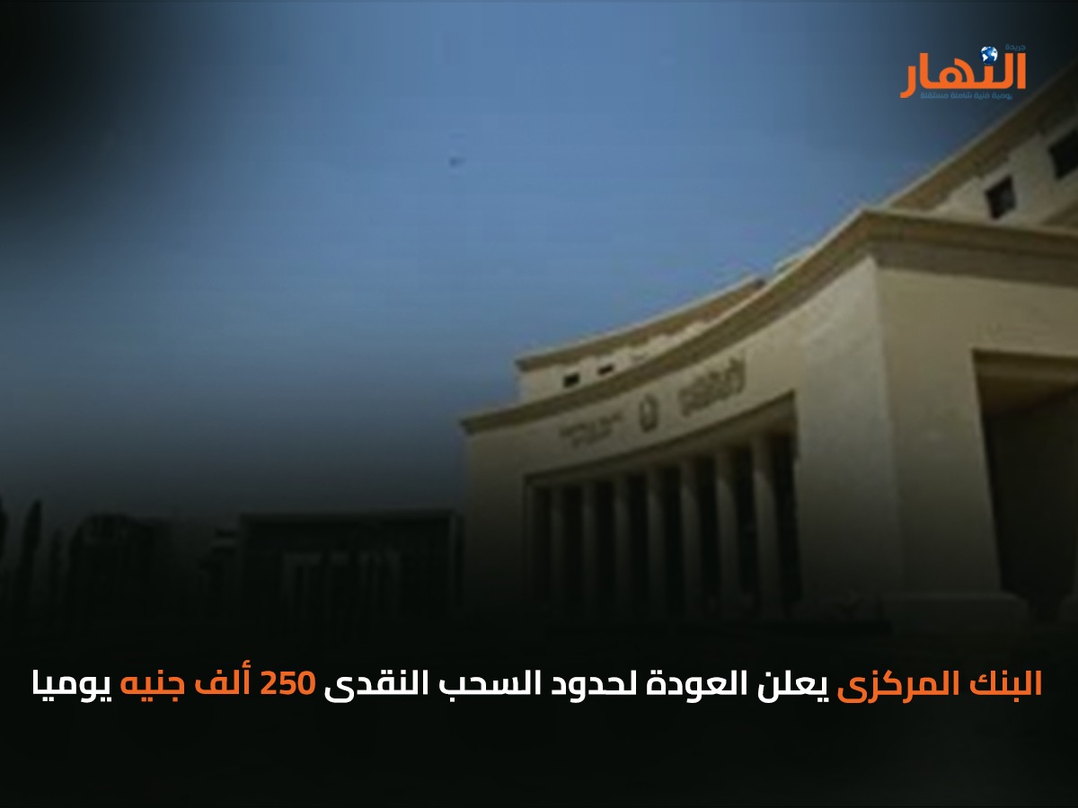 قرر البنك المركزي المصرى، اليوم الثلاثاء، عودة العمل بالحد الأقصى للسحب اليومي البالغ 250 ألف جنيه للأفراد والشركات من فروع البنوك، وإلغاء التعليمات الصادرة فى 8 يوليو 2025 والخاصة بمضاعفة هذا الحد إلى 500 ألف جنيه.