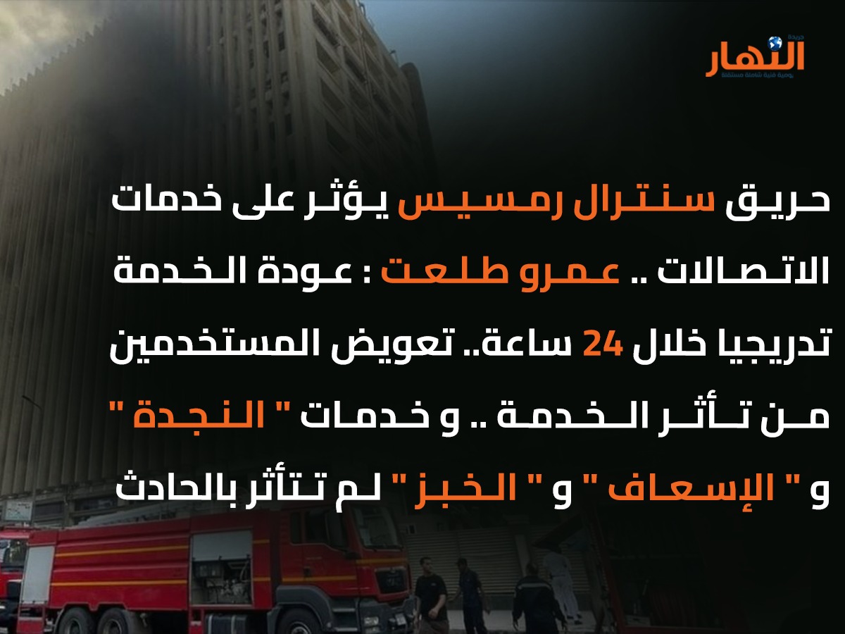 أوضح الدكتور عمرو طلعت أن خدمات الاتصالات ستعود بشكل تدريجي خلال 24 ساعة، مؤكدًا أنه تم نقل الوظائف الأساسية من سنترال رمسيس إلى أكثر من سنترال بديل، وأن مصر لا تعتمد على مركز واحد فقط لتقديم الخدمة.