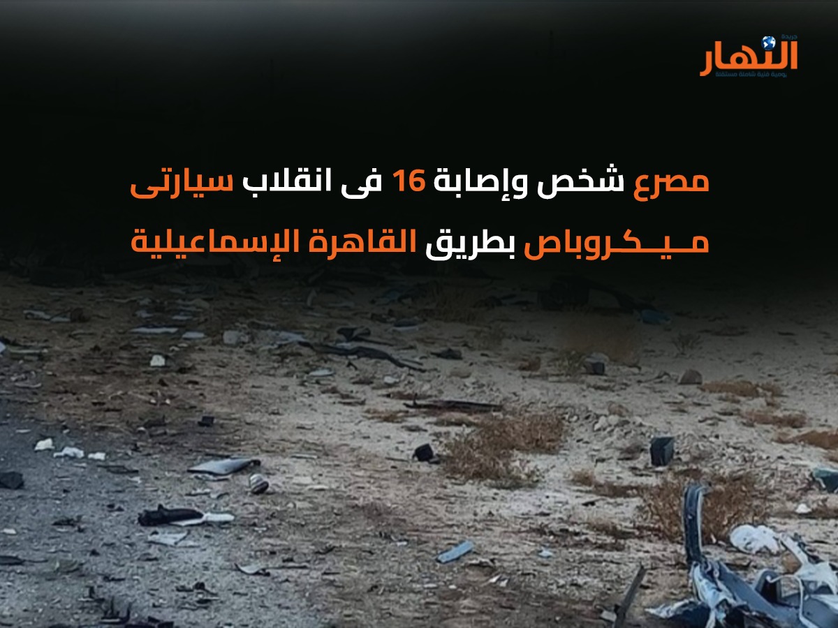 لقى شخص مصرعه، فيما أصيب 16 آخرين بإصابات متفرقة، صباح اليوم، اثر وقوع حادث تصادم وانقلاب ميكروباصين، بطريق القاهرة – الإسماعيلية، وتحديدًا أمام مستشفى “الطبي العالمي” اتجاه القاهرة.