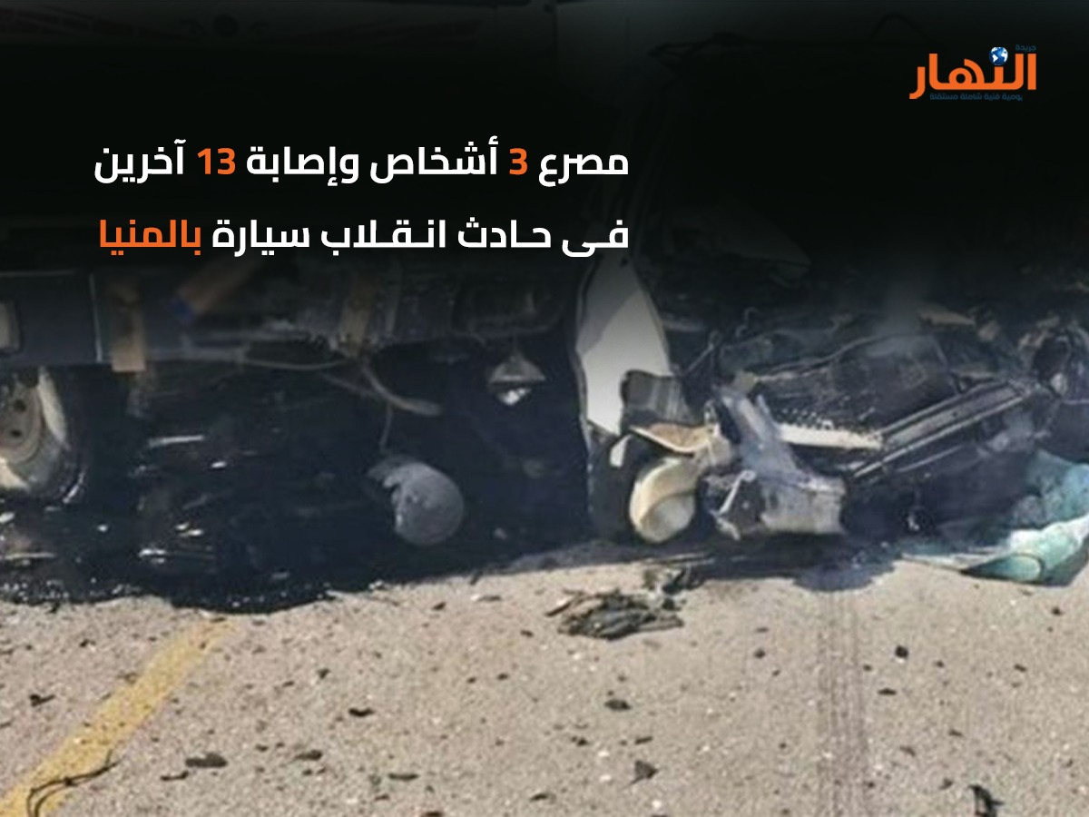 لقى 3 أشخاص مصرعهم، وأُصيب 13 آخرين في حادث انقلاب سيارة على الطريق الصحراوي الشرقي، بالقرب من الشيخ فضل رأس غارب، عند الكيلو 55 بمحافظة المنيا.