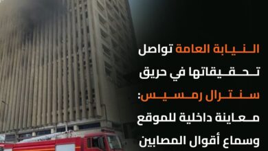 باشرت النيابة العامة اليوم، الأربعاء، أعمال المعاينة الداخلية لموقع حريق سنترال رمسيس، وذلك ضمن جهودها للكشف عن ملابسات الحادث وأسبابه.…