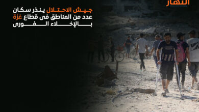 جيش الاحتلال ينذر سكان عدد من المناطق فى قطاع غزة بالإخلاء الفورى