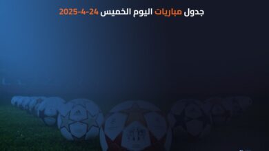 جدول مباريات اليوم الأربعاء 24-4-2025